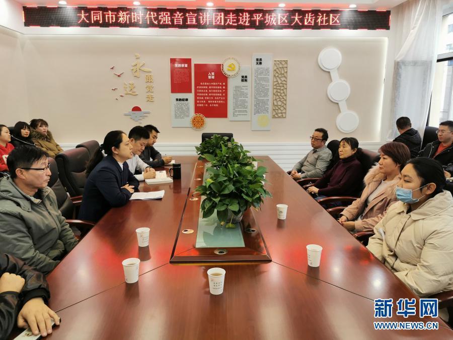 12月10日,大同市新時代強音宣講團(tuán)成員賈萬新在大同市大齒社區(qū)宣講。新華社記者 王菲菲 攝