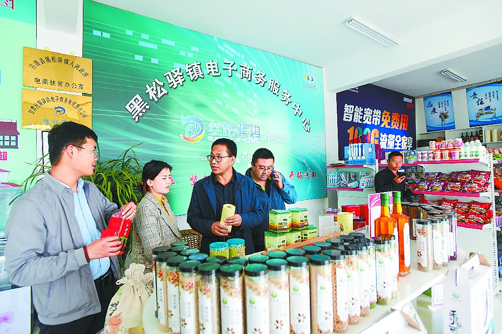 ????張開(kāi)青(中)在電商服務(wù)中心了解農(nóng)產(chǎn)品銷售情況。呂亞龍 攝