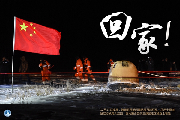 “嫦娥五姑娘”回來(lái)了!12月17日凌晨,它帶著中國(guó)科學(xué)家夢(mèng)寐以求的月球樣本,穩(wěn)穩(wěn)降落在內(nèi)蒙古四子王旗,宣告了我國(guó)首次月面自動(dòng)采樣返回任務(wù)取得圓滿成功。2020-12-17 07:27:23