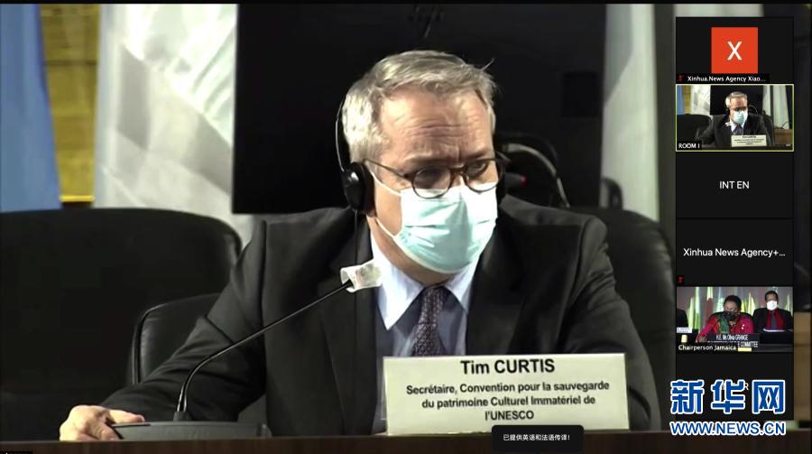 這張12月18日的視頻截圖顯示的是,聯(lián)合國(guó)教科文組織《保護(hù)非物質(zhì)文化遺產(chǎn)公約》秘書蒂姆·柯蒂斯在法國(guó)巴黎參加線上視頻會(huì)議。新華社發(fā)