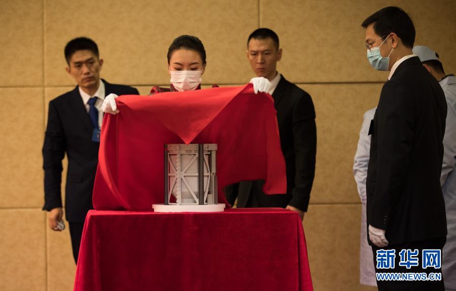 在交接儀式活動現(xiàn)場,工作人員給嫦娥五號月球樣品容器蓋上紅布(12月19日攝)。新華社記者 金立旺 攝