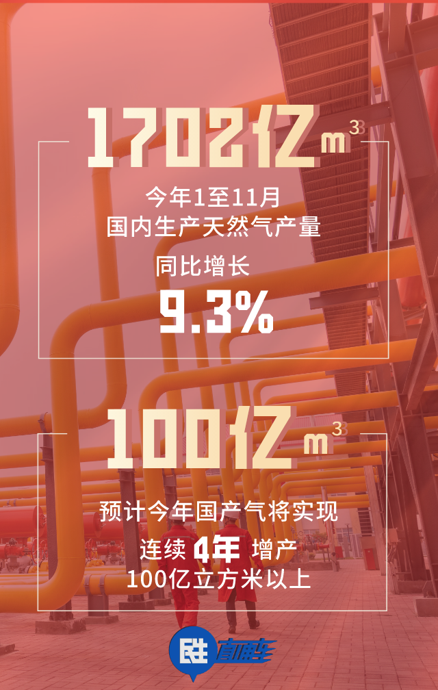 一是國內(nèi)生產(chǎn)穩(wěn)定。今年1至11月,國內(nèi)生產(chǎn)天然氣1702億立方米,比去年同期增長9.3%,預計今年國產(chǎn)氣將實現(xiàn)連續(xù)4年增產(chǎn)100億立方米以上,這為穩(wěn)定供氣奠定扎實基礎。