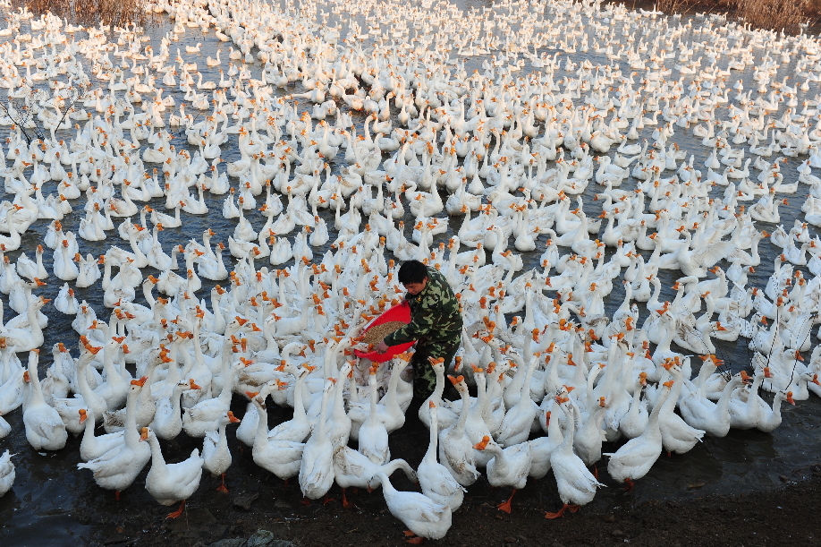 ????安徽省六安市金寨縣大山畜禽養(yǎng)殖扶貧基地位于白塔畈鎮(zhèn)項(xiàng)沖村,主要從事皖西白鵝養(yǎng)殖,開(kāi)展白鵝養(yǎng)殖技術(shù)培訓(xùn)、技術(shù)交流和信息咨詢服務(wù)。扶貧基地以“遠(yuǎn)程教育+示范基地+養(yǎng)殖戶”的模式,帶動(dòng)貧困戶脫貧致富。其中貧困戶汪雷通過(guò)養(yǎng)殖一千多只白鵝,每年增加了十幾萬(wàn)收入,順利摘掉了貧困戶的帽子。秦俊梅 攝