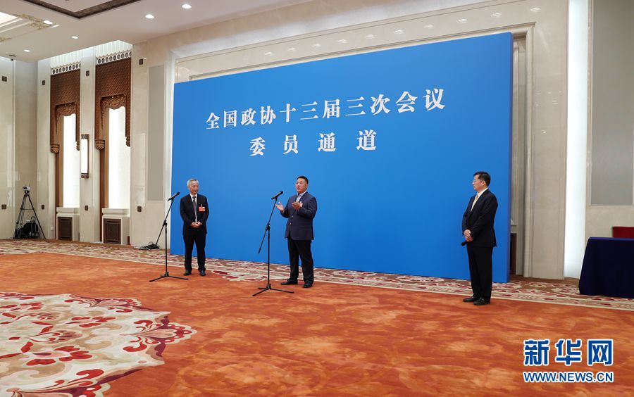 全國(guó)政協(xié)十三屆三次會(huì)議首場(chǎng)“委員通道”采訪活動(dòng)于5月21日在人民大會(huì)堂新聞發(fā)布廳舉行,邀請(qǐng)部分全國(guó)政協(xié)委員通過網(wǎng)絡(luò)視頻方式接受媒體采訪。圖為“委員通道”現(xiàn)場(chǎng)。新華網(wǎng) 王翰林 攝