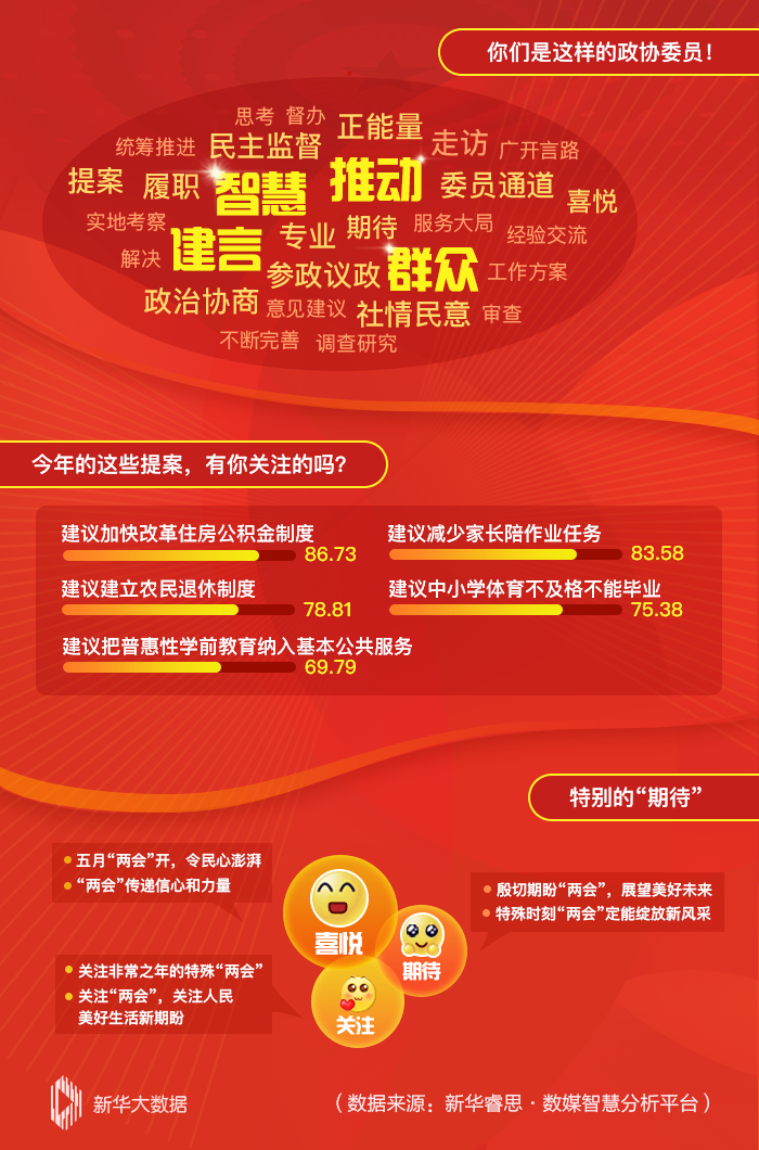 今年的提案,哪些“戳”中你的心?本周,隨著全國政協(xié)十三屆三次會議開幕時間的臨近,全國政協(xié)委員的提案持續(xù)引發(fā)輿論關(guān)注。其中,“加快改革住房公積金制度”“減少家長陪作業(yè)任務(wù)”等提案的討論熱度較高。網(wǎng)民說,委員的提案切實(shí)讓人民大眾感受到“兩會溫暖”。