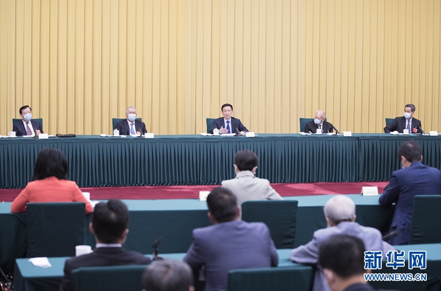 5月23日,中共中央政治局常委、國務(wù)院副總理韓正看望出席全國政協(xié)十三屆三次會議的港澳地區(qū)全國政協(xié)委員并參加討論。 新華社記者 王曄 攝