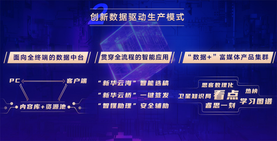 再造升級(jí)后的新華網(wǎng)突出“技術(shù)引領(lǐng)”,以“數(shù)據(jù)”為核心生產(chǎn)要素,為內(nèi)容制作、聚合分發(fā)、用戶(hù)運(yùn)營(yíng)等提供全流程支撐,實(shí)現(xiàn)生產(chǎn)模式“由外而內(nèi)”的變革。