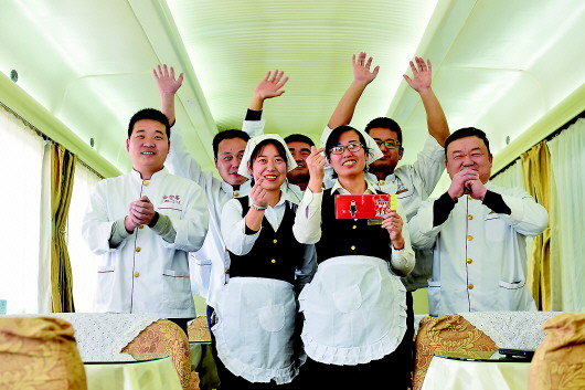 然而辭舊迎新依舊叫人期待。餐車(chē)6名工作人員,有老有少,早已親如一家。廚師長(zhǎng)楊宏偉寫(xiě)好了年夜飯菜單,“12道菜,道道硬!”服務(wù)員胡楠楠盤(pán)算起布置工作,“貼上窗花,掛上燈籠,年味兒一下就足了”。屆時(shí),餐車(chē)一家子約上列車(chē)上的一大家子一起,熱熱鬧鬧過(guò)個(gè)年。