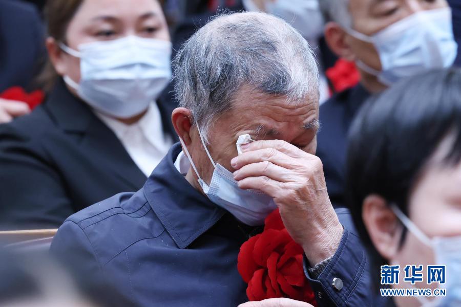 2月25日,全國(guó)脫貧攻堅(jiān)總結(jié)表彰大會(huì)在北京人民大會(huì)堂隆重舉行。會(huì)上,“全國(guó)脫貧攻堅(jiān)楷模”黃文秀的父親黃忠杰替女兒戴上了大紅花,并灑下淚水。黃文秀生前為廣西壯族自治區(qū)百色市委宣傳部派駐樂(lè)業(yè)縣新化鎮(zhèn)百坭村駐村第一書記,2019年6月17日犧牲在脫貧攻堅(jiān)一線,獻(xiàn)出了年僅30歲的寶貴生命。新華社記者 劉彬 攝
