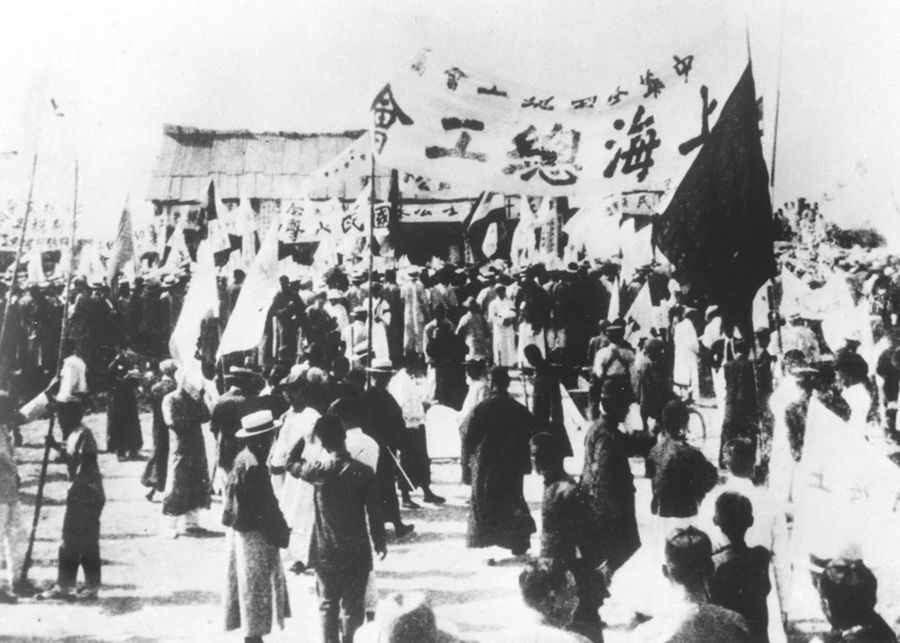 圖為五卅運動爆發(fā)時上海總工會的游行隊伍 新華社圖片