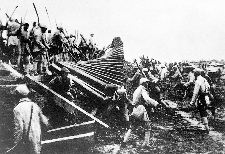 1947年6月30日夜,劉鄧大軍突破國民黨軍隊(duì)的黃河防線,挺進(jìn)大別山,揭開我軍戰(zhàn)略進(jìn)攻序幕。新華社圖片