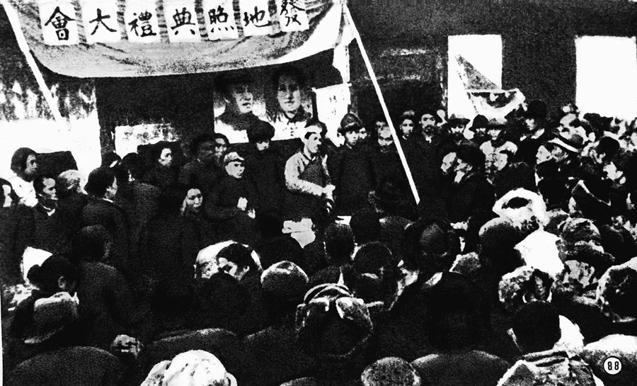 冀中農(nóng)民舉行擁護土地改革運動大會。 新華社圖片