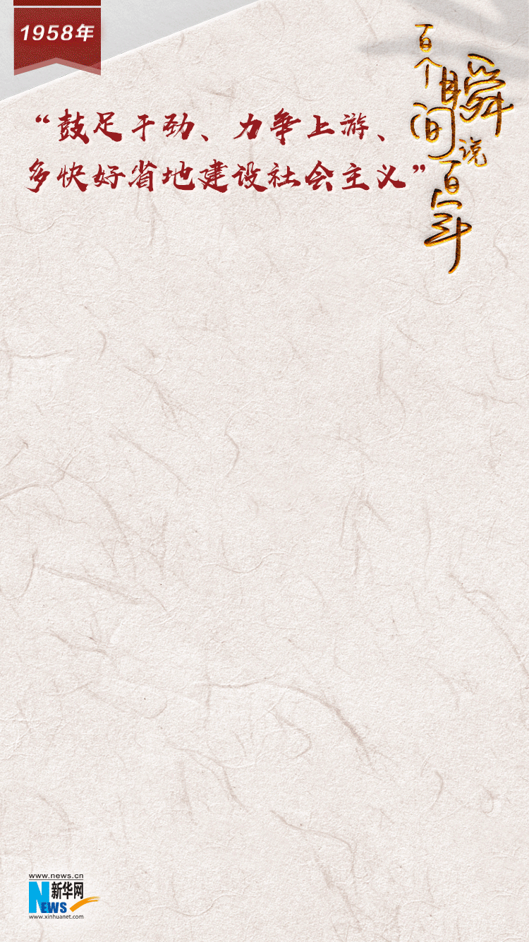 1957年冬季,全國掀起以興修水利、養(yǎng)豬積肥和改良土壤為中心的農(nóng)業(yè)生產(chǎn)高潮,拉開了“大躍進”的序幕。1958年5月,黨的八大二次會議通過“鼓足干勁、力爭上游、多快好省地建設社會主義”的總路線,反映了黨和廣大人民群眾迫切要求改變我國經(jīng)濟文化落后狀況的普遍愿望,但違背了經(jīng)濟建設所必須遵循的客觀規(guī)律。