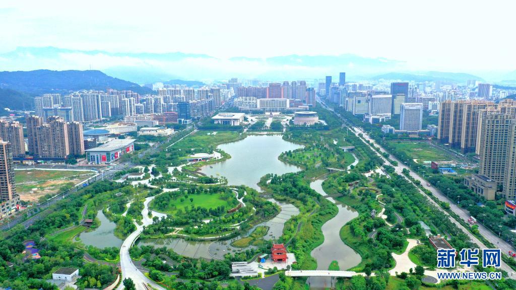 龍巖市主城區(qū)龍津湖公園一景(5月14日攝,無人機(jī)照片)。新華社發(fā)