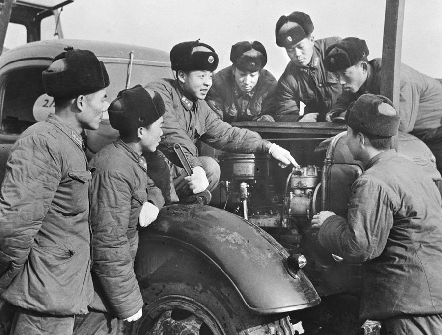雷鋒同志是艱苦奮斗的模范,勤儉節(jié)約的標(biāo)兵。這是他在向戰(zhàn)友們介紹節(jié)約油料和安全行車的經(jīng)驗。新華社圖片