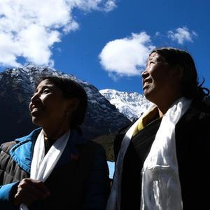 卓嘎(左)、央宗姐妹倆在一起(2017年10月29日攝)。新華社記者 普布扎西 攝