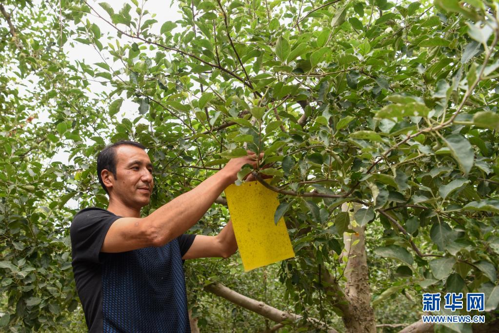7月5日,在新疆阿克蘇市依干其鄉(xiāng)巴格其村,村民在采摘園忙碌。新華社記者 丁磊 攝