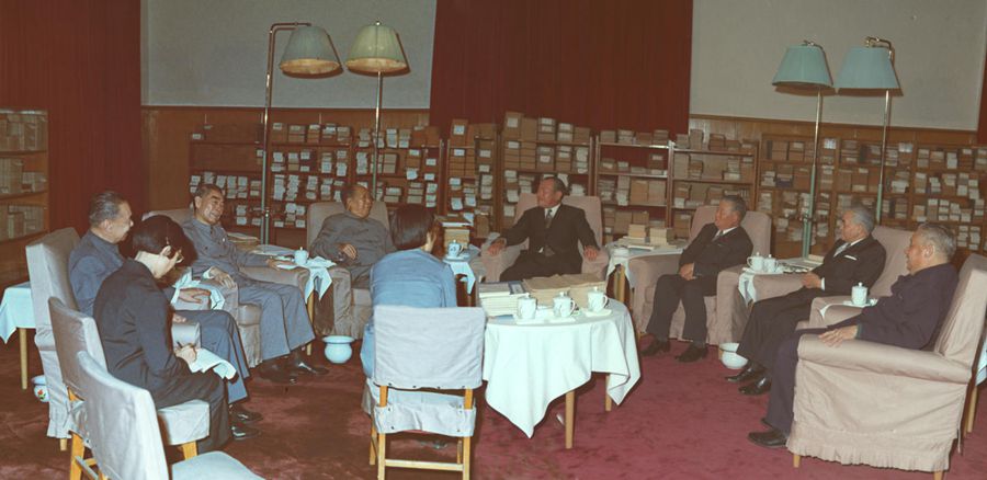 毛澤東主席會(huì)見日本國內(nèi)閣總理大臣田中角榮。新華社圖片