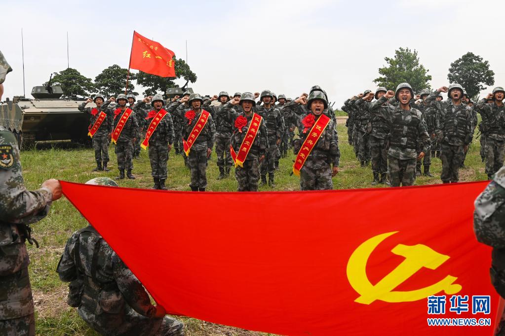 陸軍第83集團(tuán)軍某旅“紅一連”黨支部為新戰(zhàn)士舉行授槍儀式(7月4日攝)。新華社記者 張永進(jìn) 攝