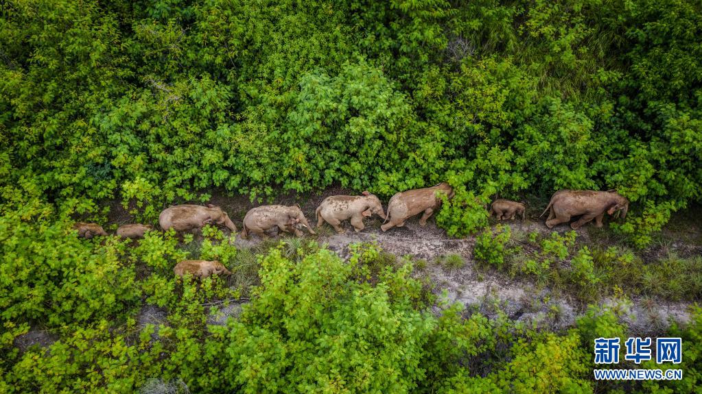 8月9日,象群穿過云南省玉溪市元江縣境內的叢林。新華社記者 江文耀 攝