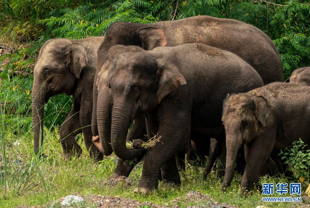 8月9日,象群在云南省玉溪市元江縣境內的叢林中覓食。新華社記者 江文耀 攝
