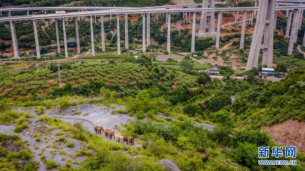 8月9日,象群在云南省玉溪市元江縣境內的一處高速路橋下短暫停留。新華社記者 江文耀 攝