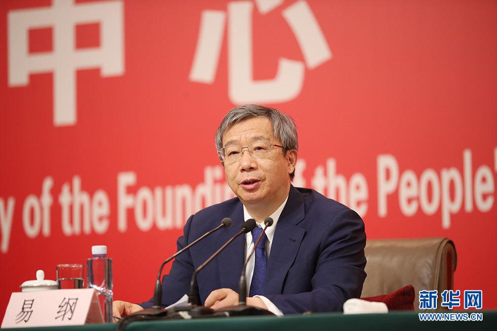 9月24日,慶祝中華人民共和國成立70周年活動(dòng)新聞中心在北京梅地亞中心二層新聞發(fā)布廳舉辦第一場新聞發(fā)布會(huì)。圖為中國人民銀行行長易綱介紹相關(guān)情況。新華網(wǎng)記者 陳競超 攝