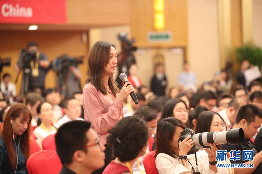 9月24日,慶祝中華人民共和國成立70周年活動新聞中心在北京梅地亞中心二層新聞發(fā)布廳舉辦第一場新聞發(fā)布會。圖為媒體記者提問。新華網(wǎng)記者 陳競超 攝