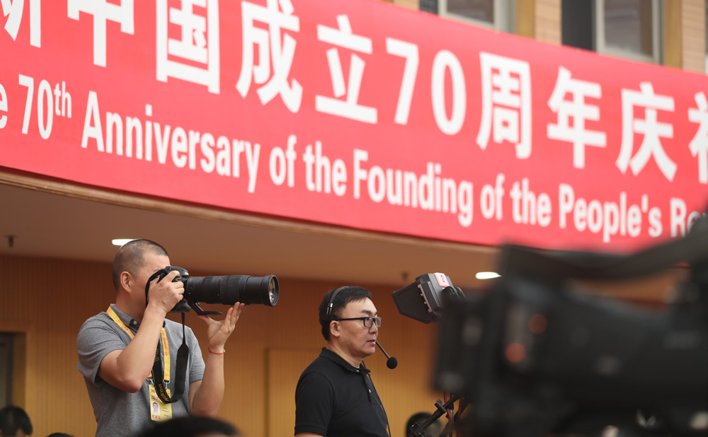 9月27日,慶祝中華人民共和國(guó)成立70周年活動(dòng)新聞中心在梅地亞中心二層新聞發(fā)布廳舉辦第三場(chǎng)新聞發(fā)布會(huì),中央農(nóng)村工作領(lǐng)導(dǎo)小組辦公室主任、農(nóng)業(yè)農(nóng)村部部長(zhǎng)韓長(zhǎng)賦,國(guó)務(wù)院扶貧開發(fā)領(lǐng)導(dǎo)小組辦公室主任劉永富介紹全面建成小康社會(huì),扎實(shí)推進(jìn)脫貧攻堅(jiān)和鄉(xiāng)村振興,并回答記者提問。圖為采訪拍攝發(fā)布會(huì)的記者。新華網(wǎng) 陳杰 攝