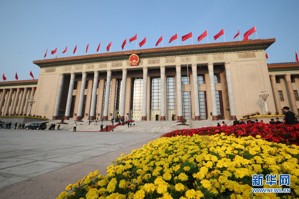 人民大會堂外紅旗飄揚-新華網(wǎng)