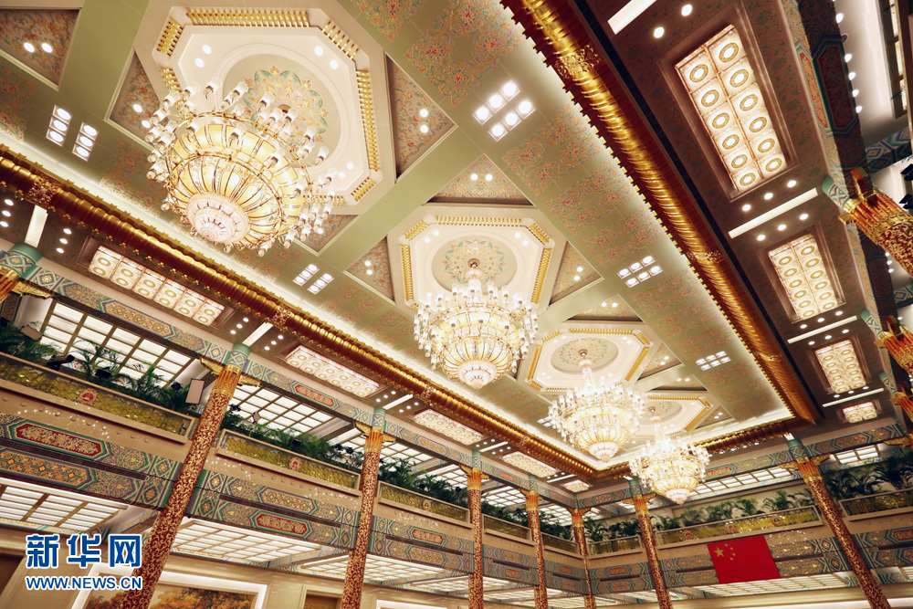9月29日上午10時,中華人民共和國國家勛章和國家榮譽稱號頒授儀式在人民大會堂隆重舉行。圖為人民大會堂金色大廳。新華網(wǎng) 陳杰 攝