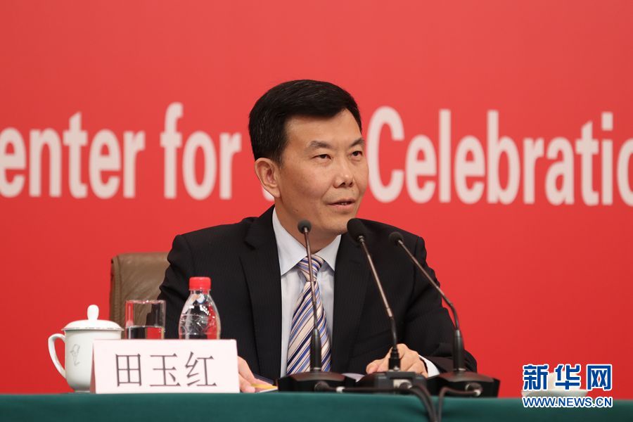 9月29日,慶祝中華人民共和國成立70周年活動新聞中心在北京梅地亞中心二層新聞發(fā)布廳舉辦第四場新聞發(fā)布會。圖為慶祝中華人民共和國成立70周年活動新聞中心負責(zé)人田玉紅。新華網(wǎng)記者 焦鵬 攝