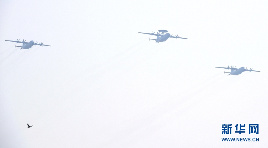 新華社北京10月1日電(黃書波、周正新)空警-500H預(yù)警機(jī)、空警-200H預(yù)警機(jī)、運(yùn)-8反潛巡邏機(jī)、運(yùn)-8技術(shù)偵察機(jī)組成的海上巡邏機(jī)梯隊,1日上午飛過天安門廣場上空,作為海軍新型信息作戰(zhàn)力量的4型特種機(jī)首次集體亮相。