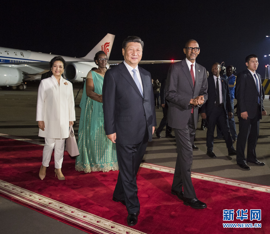 習(xí)近平是在結(jié)束對塞內(nèi)加爾國事訪問后抵達基加利的。離開達喀爾時,習(xí)近平出席塞內(nèi)加爾總統(tǒng)薩勒在機場舉行的歡送儀式。習(xí)近平和彭麗媛抵達機場時,薩勒和夫人瑪麗梅在停車處迎接。兩國元首夫婦一同前往停機坪。兩國元首登上檢閱臺。軍樂隊奏中塞兩國國歌。習(xí)近平在薩勒陪同下檢閱儀仗隊。習(xí)近平和彭麗媛同塞方送行人員道別。薩勒夫婦同中方陪同人員道別。