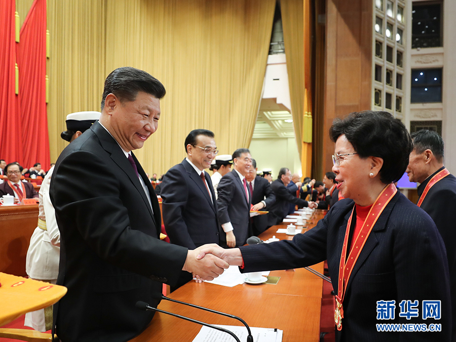 12月18日,慶祝改革開(kāi)放40周年大會(huì)在北京人民大會(huì)堂隆重舉行。中共中央總書(shū)記、國(guó)家主席、中央軍委主席習(xí)近平在大會(huì)上發(fā)表重要講話。這是習(xí)近平等為獲得改革先鋒稱號(hào)人員代表頒獎(jiǎng)。 新華社記者 鞠鵬 攝