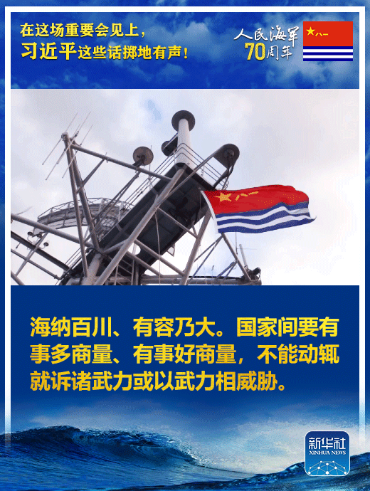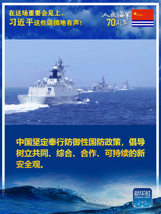 國家主席、中央軍委主席習(xí)近平23日上午在青島集體會見了應(yīng)邀出席中國人民解放軍海軍成立70周年多國海軍活動的外方代表團(tuán)團(tuán)長,代表中國政府和軍隊向出席活動的各國海軍官兵表示熱烈歡迎。
