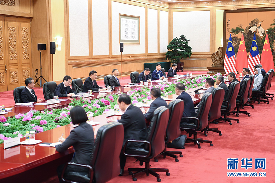 習(xí)近平指出,中國和馬來西亞建交45年,一半時(shí)間在馬哈蒂爾先生總理任內(nèi),你對中馬關(guān)系發(fā)展作出了重要貢獻(xiàn)。當(dāng)前,兩國關(guān)系站在了新的歷史起點(diǎn)上。我們要以共建“一帶一路”為機(jī)遇,為中馬關(guān)系開創(chuàng)美好未來。雙方要堅(jiān)持中馬友好,相互尊重和信任;照顧彼此重大關(guān)切,相互理解和支持。共建“一帶一路”可以推動(dòng)中國全方位開放,這為世界各國、特別是周邊國家?guī)砀髾C(jī)遇。中馬共建“一帶一路”基礎(chǔ)扎實(shí),前景可期,雙方要加強(qiáng)規(guī)劃,做大合作平臺,推進(jìn)高質(zhì)量合作,要把“兩國雙園”做大做強(qiáng),使其成為“陸海新通道”重要節(jié)點(diǎn),促進(jìn)兩國和地區(qū)聯(lián)通和發(fā)展??偫硐壬缟小皝喼迌r(jià)值觀”,倡導(dǎo)發(fā)展中國家團(tuán)結(jié)合作,在當(dāng)前形勢下有重要現(xiàn)實(shí)意義。雙方要加強(qiáng)多邊協(xié)作,推動(dòng)中國-東盟合作提質(zhì)升級。中方支持馬方明年當(dāng)好亞太經(jīng)合組織會(huì)議東道主,推動(dòng)區(qū)域經(jīng)濟(jì)一體化和經(jīng)濟(jì)全球化,推動(dòng)構(gòu)建開放型世界經(jīng)濟(jì)。