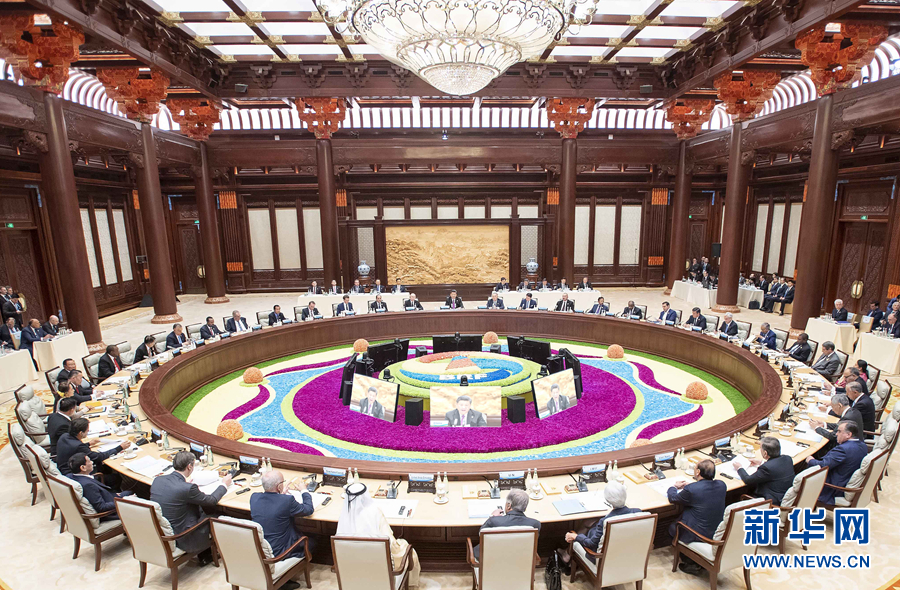 4月27日,第二屆“一帶一路”國(guó)際合作高峰論壇在北京雁棲湖國(guó)際會(huì)議中心舉行圓桌峰會(huì),國(guó)家主席習(xí)近平主持會(huì)議并致開幕辭。 新華社記者 李濤 攝