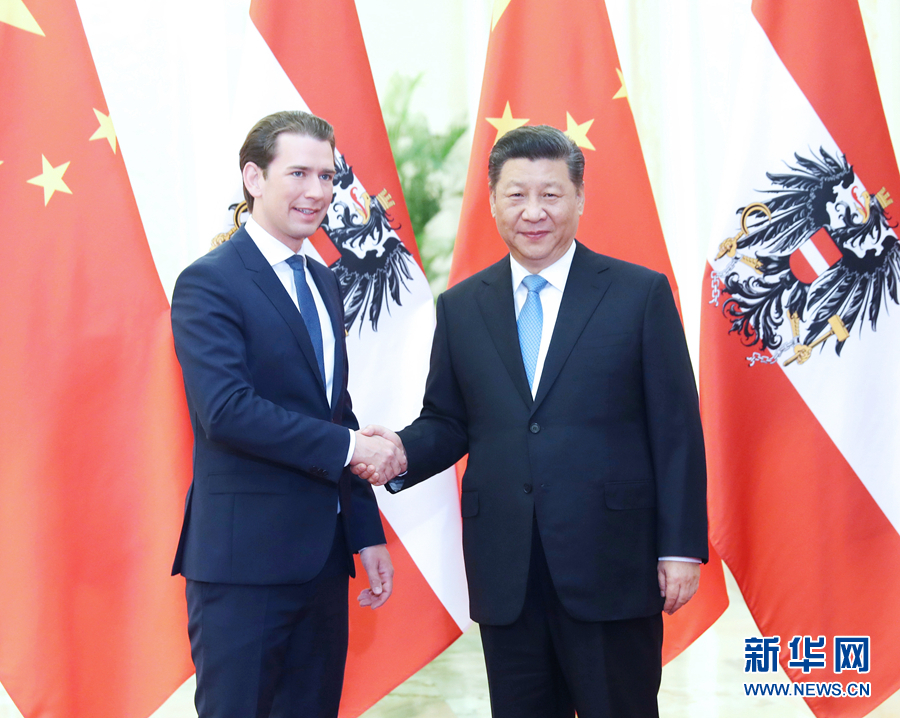 4月29日,國(guó)家主席習(xí)近平在北京人民大會(huì)堂會(huì)見(jiàn)奧地利總理庫(kù)爾茨。 新華社記者 劉衛(wèi)兵 攝