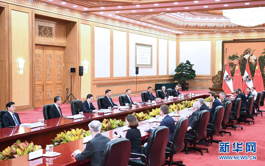 習(xí)近平指出,中方高度重視發(fā)展中奧關(guān)系。兩國(guó)友好戰(zhàn)略伙伴關(guān)系不斷得到充實(shí)。中奧合作潛力巨大,前景廣闊。雙方要堅(jiān)持平等相待、相互尊重,不斷將雙邊關(guān)系推向新高度。要為加強(qiáng)兩國(guó)人文交流搭建更多平臺(tái),促進(jìn)兩國(guó)民心相通。中方歡迎奧方積極參與共建“一帶一路”和“16+1合作”,贊賞奧方對(duì)中國(guó)投資展現(xiàn)的開(kāi)放姿態(tài),歡迎奧地利企業(yè)抓住中國(guó)新一輪擴(kuò)大開(kāi)放帶來(lái)的機(jī)遇。
