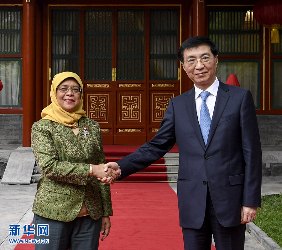 5月15日,中共中央政治局常委、中央書記處書記王滬寧在北京釣魚臺國賓館會見新加坡總統(tǒng)哈莉瑪。 新華社記者高潔攝
