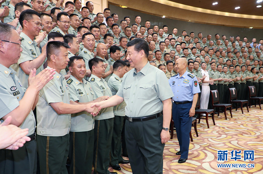 7月15日至16日,中共中央總書記、國(guó)家主席、中央軍委主席習(xí)近平在內(nèi)蒙古考察并指導(dǎo)開(kāi)展“不忘初心、牢記使命”主題教育。這是16日上午,習(xí)近平在呼和浩特親切接見(jiàn)駐內(nèi)蒙古部隊(duì)副師職以上領(lǐng)導(dǎo)干部和團(tuán)級(jí)單位主官,代表黨中央和中央軍委向駐內(nèi)蒙古部隊(duì)全體官兵致以誠(chéng)摯問(wèn)候。 新華社記者 李剛 攝