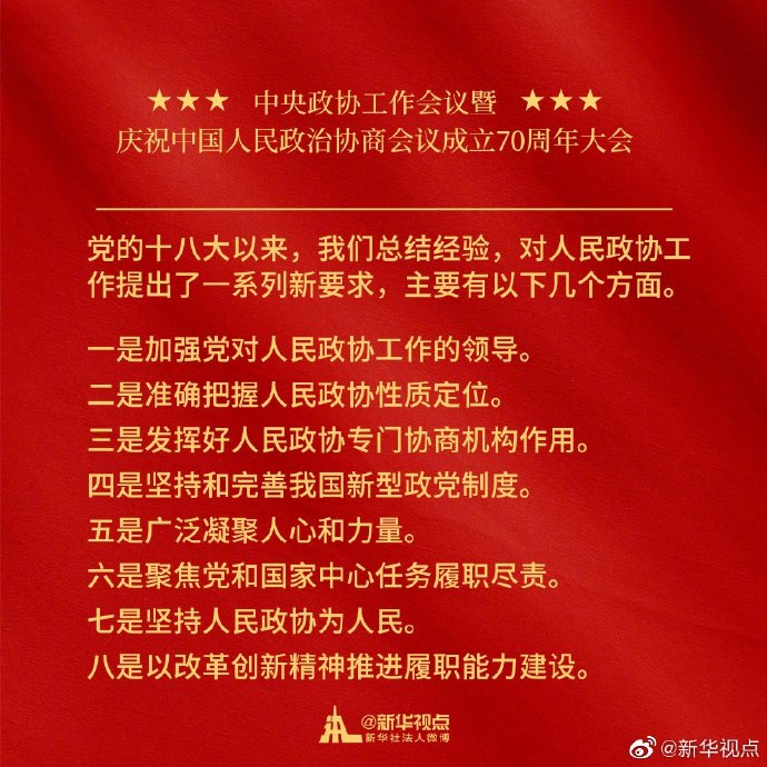 金句來了!習(xí)近平在中央政協(xié)工作會議暨慶祝中國人民政治協(xié)商會議成立70周年大會上的講話金句?? ?????