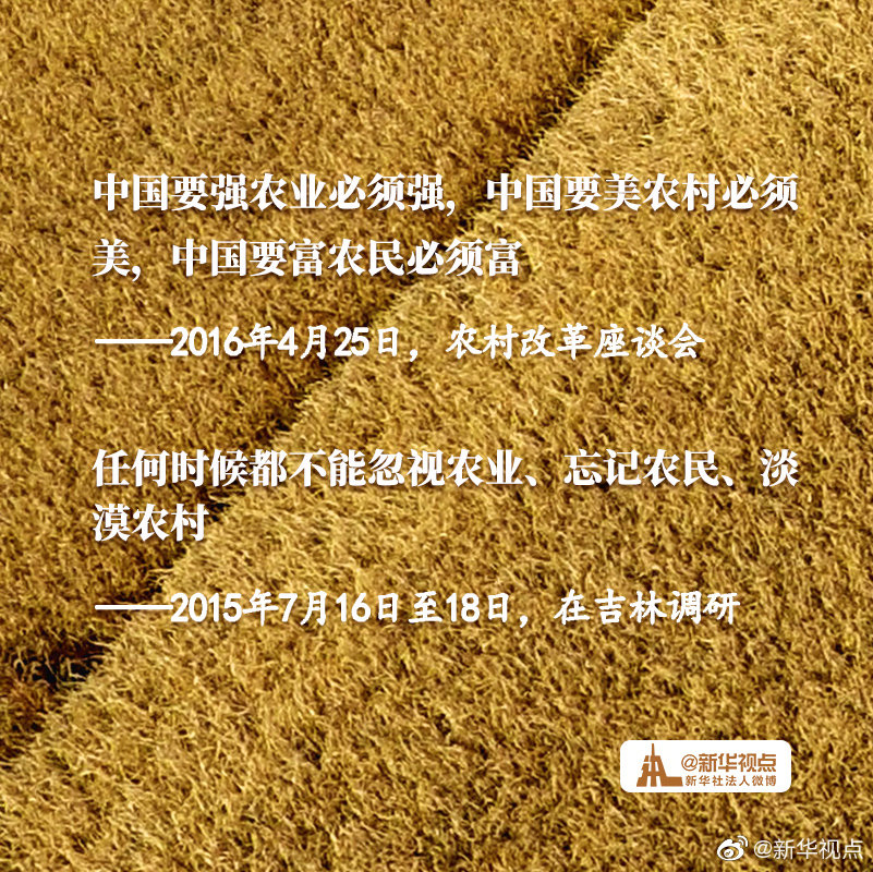 “農(nóng)業(yè)農(nóng)村工作,說(shuō)一千、道一萬(wàn),增加農(nóng)民收入是關(guān)鍵”“中國(guó)要強(qiáng)農(nóng)業(yè)必須強(qiáng),中國(guó)要美農(nóng)村必須美,中國(guó)要富農(nóng)民必須富”……黨的十八大以來(lái),以習(xí)近平同志為核心的黨中央關(guān)注農(nóng)業(yè)、關(guān)心農(nóng)村、關(guān)愛(ài)農(nóng)民,一起來(lái)學(xué)習(xí)總書(shū)記的金句? ????