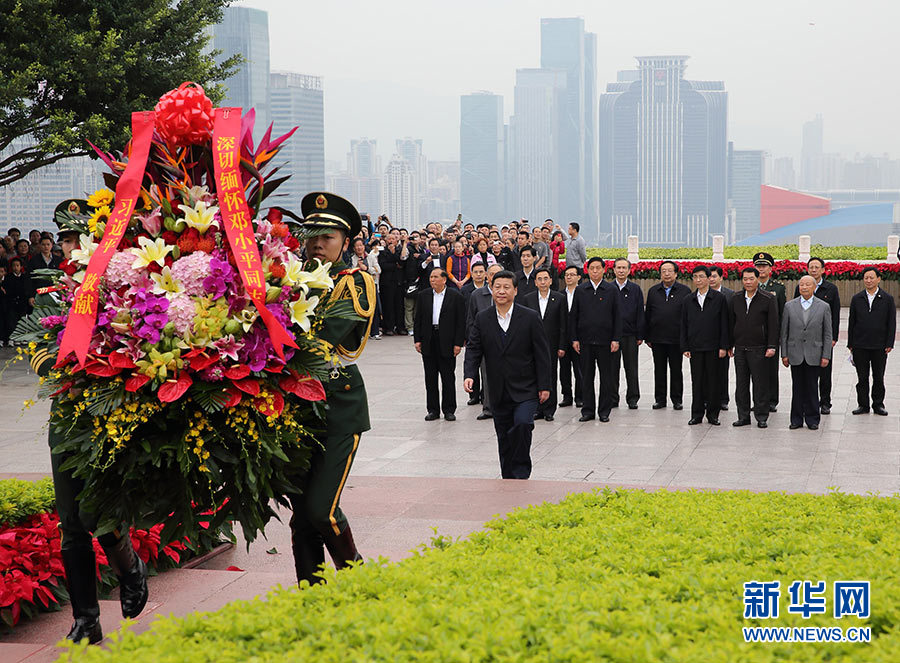 2012年12月8日,習(xí)近平在深圳蓮花山公園向鄧小平銅像敬獻(xiàn)花籃。新華社記者 蘭紅光 攝