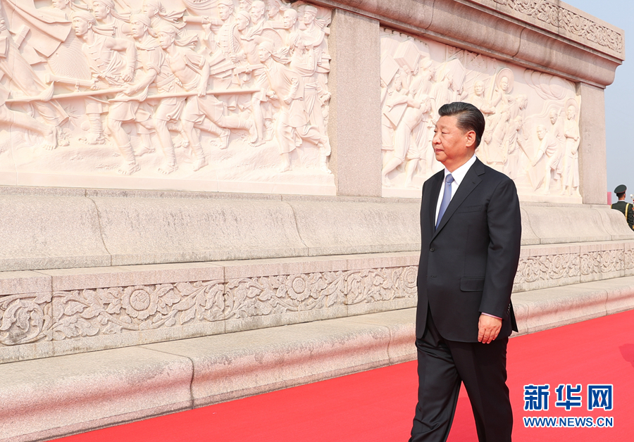 接著,習(xí)近平等黨和國家領(lǐng)導(dǎo)人緩步繞行,瞻仰人民英雄紀(jì)念碑。巍峨的紀(jì)念碑,無聲講述著中華民族近代以來激昂豪邁、氣吞山河的奮斗歷程。碑身上的10幅漢白玉浮雕,彰顯中國人民百折不撓、自強不息的偉大精神。