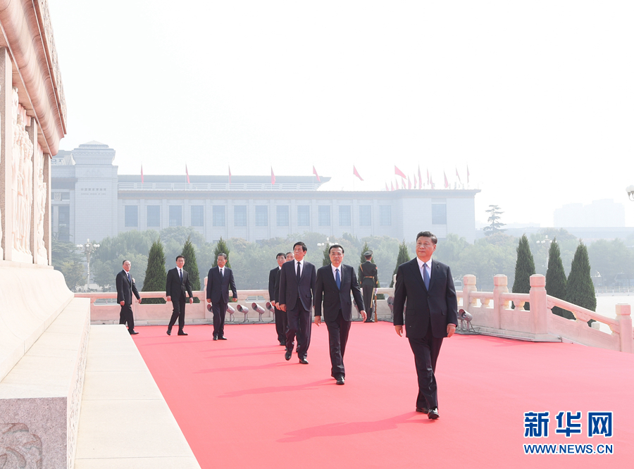 9月30日上午,習(xí)近平、李克強、栗戰(zhàn)書、汪洋、王滬寧、趙樂際、韓正、王岐山等黨和國家領(lǐng)導(dǎo)人來到北京天安門廣場,出席烈士紀(jì)念日向人民英雄敬獻花籃儀式。儀式前,習(xí)近平等來到毛主席紀(jì)念堂瞻仰毛澤東同志遺容。新華社記者 鞠鵬 攝