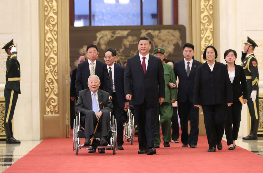 ?萬(wàn)眾矚目之下,習(xí)近平總書記同他們一同步入會(huì)場(chǎng)。在雄壯激昂的《向祖國(guó)致敬》樂曲聲中,總書記為他們一一頒授勛章獎(jiǎng)?wù)?,親切握手、表示祝賀。