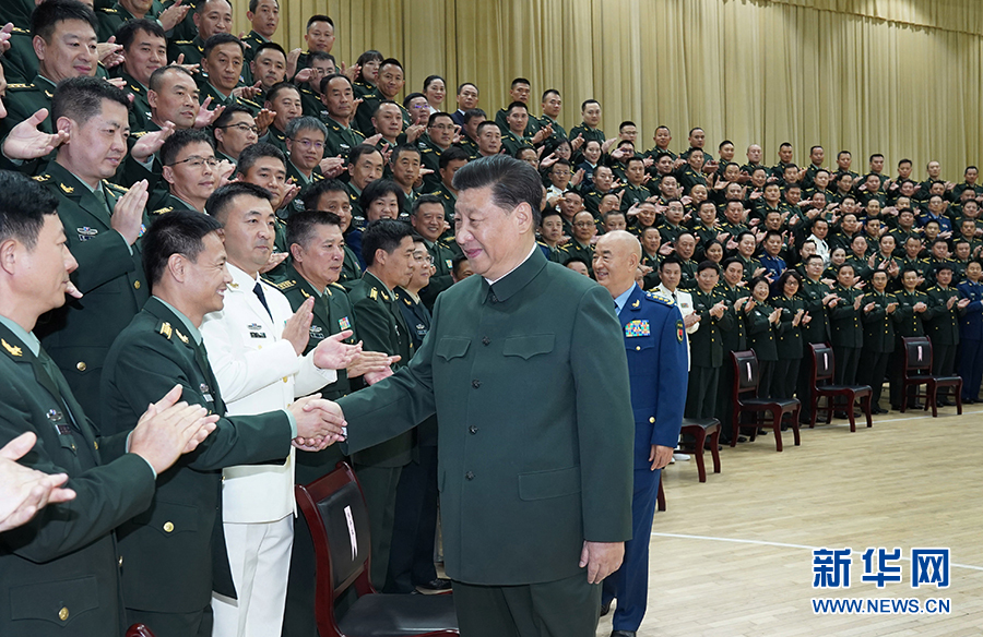 10月18日上午,中共中央總書記、國家主席、中央軍委主席習(xí)近平在武漢分別接見了聯(lián)勤保障部隊第一次黨代表大會全體代表、駐湖北部隊副師職以上領(lǐng)導(dǎo)干部和團(tuán)級單位主官。這是習(xí)近平親切接見駐湖北部隊副師職以上領(lǐng)導(dǎo)干部和團(tuán)級單位主官。 新華社記者 李剛 攝