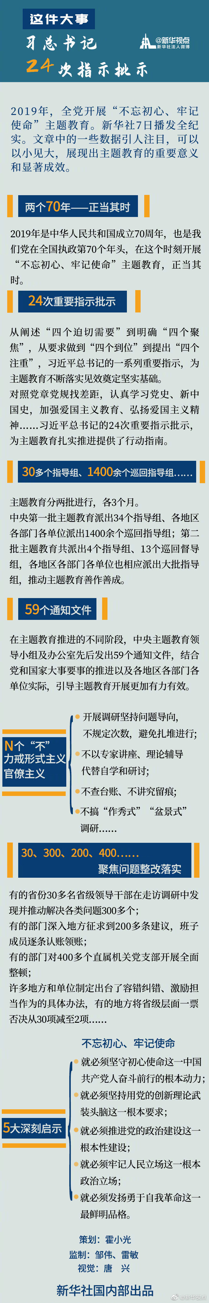 2019年,全黨開展“不忘初心、牢記使命”主題教育。新華社7日播發(fā)全紀實。文章中的一些數(shù)據(jù)引人注目,可以以小見大,展現(xiàn)出主題教育的重要意義和顯著成效。